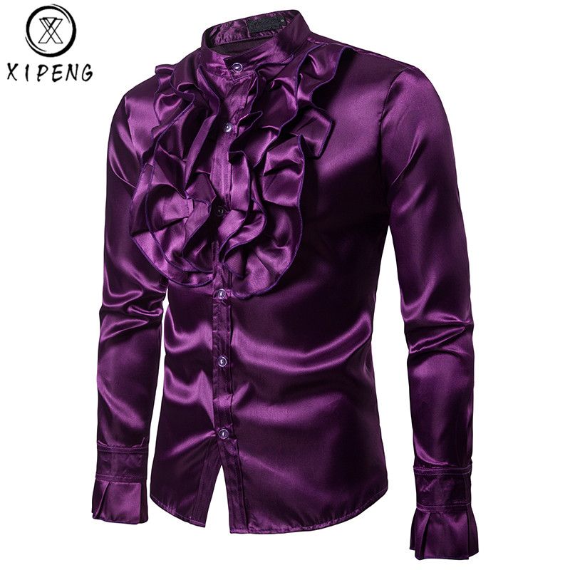 Acheter Violet Soie Satin Chemise Hommes Unique Designe Vintage De