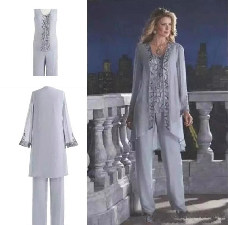 Acheter Argent Mere De La Mariee Trois Pieces Pantalon Costume