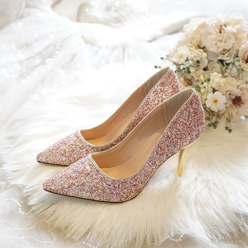 Escarpins Bout Pointu Or Rose Chaussure De Soiree Brillante